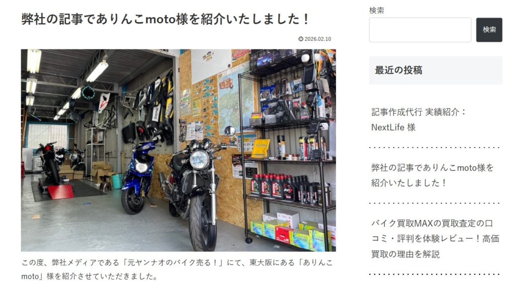 紹介記事を書いていただけると連絡を受けた時、どんな内容になるんだろう…と期待と不安が入り混じった気持ちで待っていたのですが、「「愛車を長く任せられる主治医のようなショップを探している」という方は、ぜひ一度、ありんこmoto様のWebサイトをチェックしてみてください」この一文が素敵過ぎて、プロを感じました。主治医になりた~い!